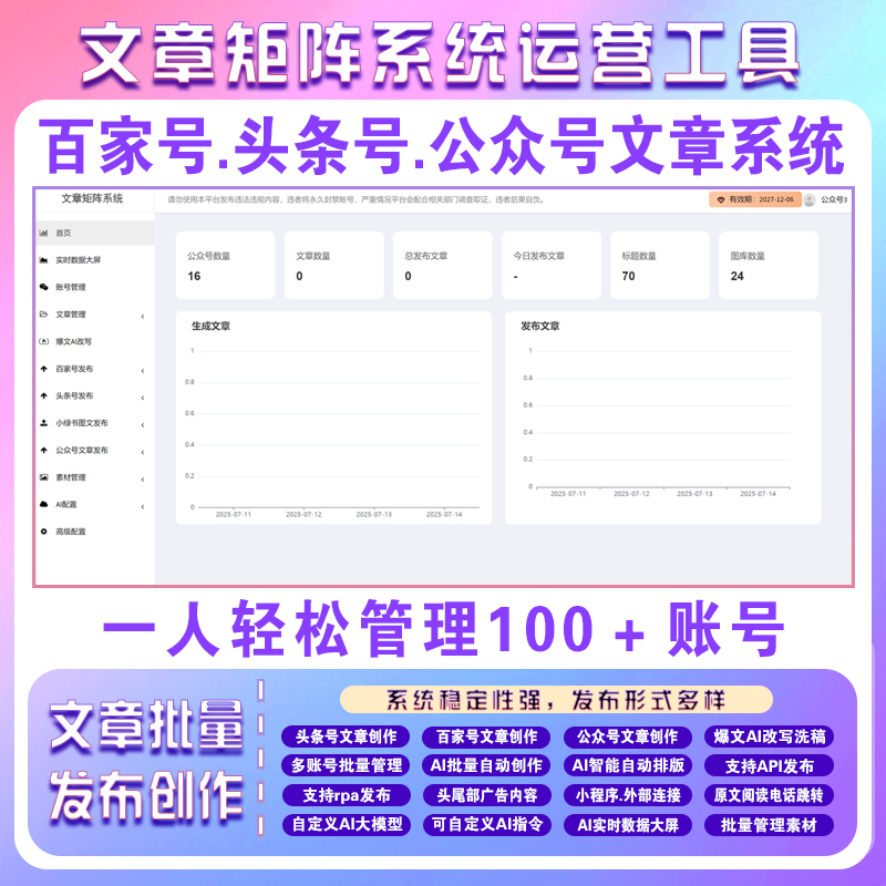 版本号:V 1.7.11、升级百家号CK算法,兼容市面上大多数ck模式;2、优化发布逻辑;3、图文AI客户端升级至V1.3.7;